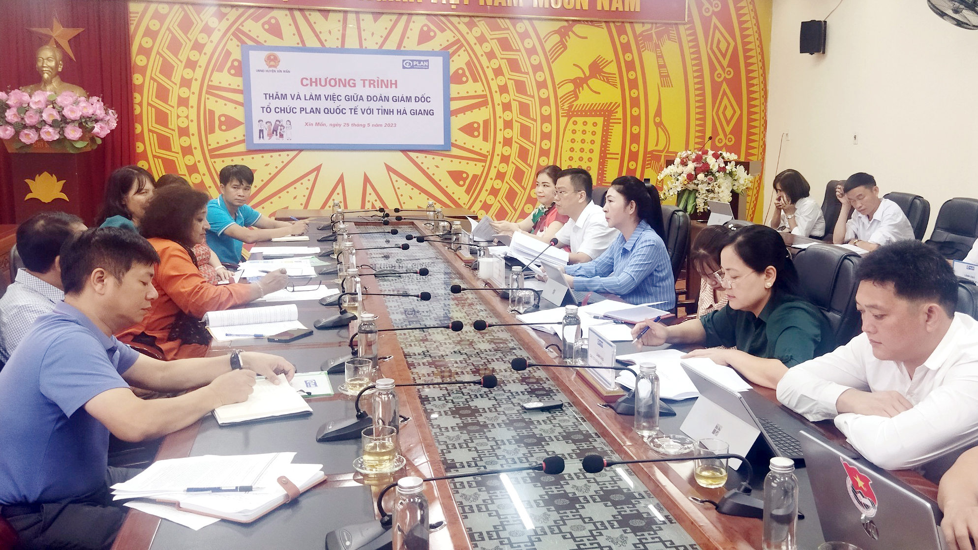 Ngày 25.05.2023, tại huyện Xín Mần, Đoàn công tác của Tổ chức Plan quốc tế do Bà Bhagvashri Dengle, Giám đốc Tổ chức Plan International khu vực Châu Á làm trưởng đoàn đã có chuyến thăm và làm việc tại tỉnh Hà Giang, nhằm nắm bắt kết quả triển khai các hoạt động, dự án của Tổ chức Plan trên địa bàn tỉnh. Cùng đi có Bà Migena Shulla, Giám đốc Plan International tại Việt Nam; Bà Lê Quỳnh Lan, Giám đốc thực hiện chương trình và đối tác Plan International tại Việt Nam; Ông Dương Văn Tuy, Giám đốc Văn phòng Plan vùng Hà Giang. Tiếp đón và làm việc với đoàn có đồng chí Mao Quốc Toản, Phó Giám đốc Sở Ngoại vụ; đồng chí Vũ Thị Hoà, Phó Chủ tịch UBND huyện Xín Mần; đại diện các phòng, ban chuyên môn và các xã nằm trong vùng dự án.